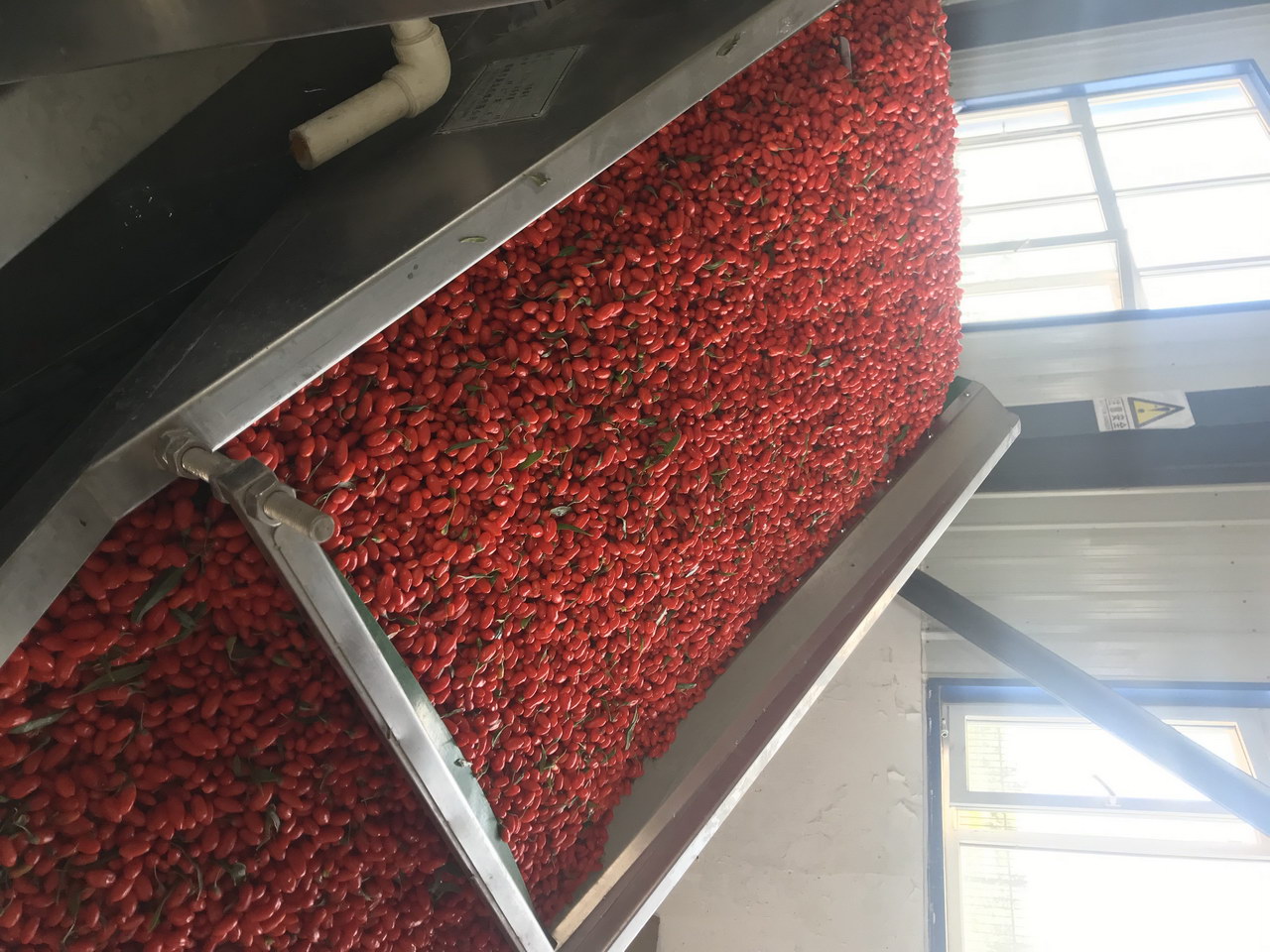 传统的枸杞干制过程中,需要大量的人工和铺摊面积,进行频繁的翻晒烘烤,以防叠累滋生细菌而降低产量。采用AIROSD热泵烘干机,在烘烤过程中采用升速烘干-恒速烘干-降速烘干,入烘房后,35-40度保温2-3小时;升温到40-45度保温8小时、升温到50-55度保温8小时,共计18-20小时。
